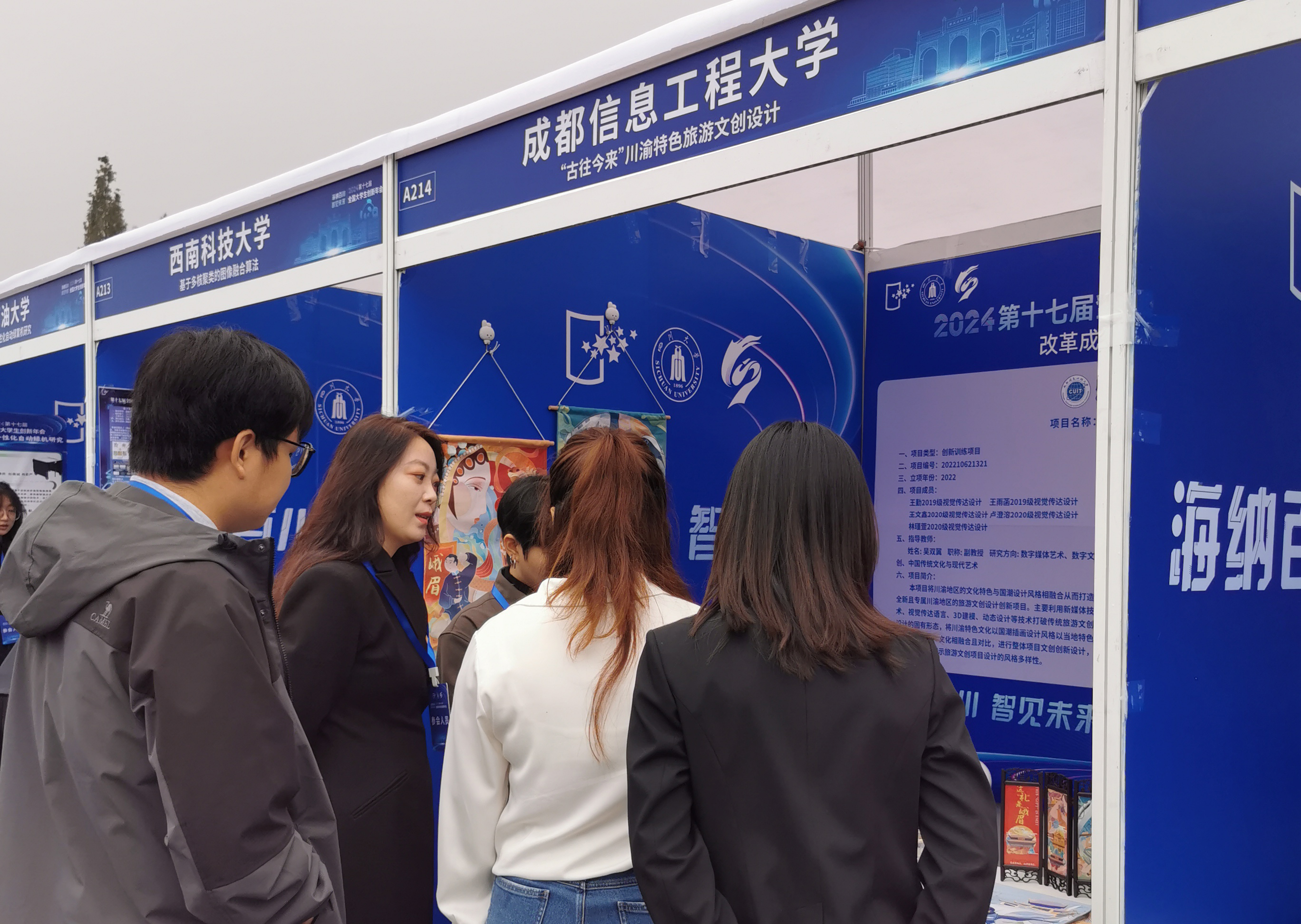 【本网讯】第十七届全国大学生创新年会共收到部属高校和地方教育主管部门推荐项目1006项。经过相关专家初评、“国创计划”专家工作组复选,共有510项成果入选年会,其中学术论文200篇、创新创业项目改革成果展示250项、创业推介项目60项。乐动国家级创新训练项目——“古往今来”川渝特色旅游文创设计,作为创新创业项目改革成果展示,入选本届年会。