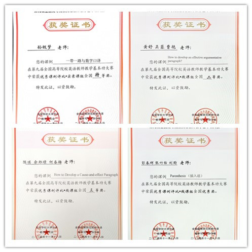 【本网讯】近日,第九届全国高等院校英语教师教学基本功大赛结果揭晓,乐动外国语学院教师喜获四项全国奖项、三项省级奖项。孙假梦获得实录课组全国特等奖,黄舒、吴蓉、曹艳教师团队获得微课组全国二等奖,陈琪、余郑璟、何春梅教师团队获得微课组全国三等奖,彭春辉、张竹怡、刘昀教师团队获得微课组全国优秀奖。王春莉获得说课组省级二等奖,宋洁琳和彭春辉获得说课组省级三等奖。黄驰获得优秀指导教师奖。