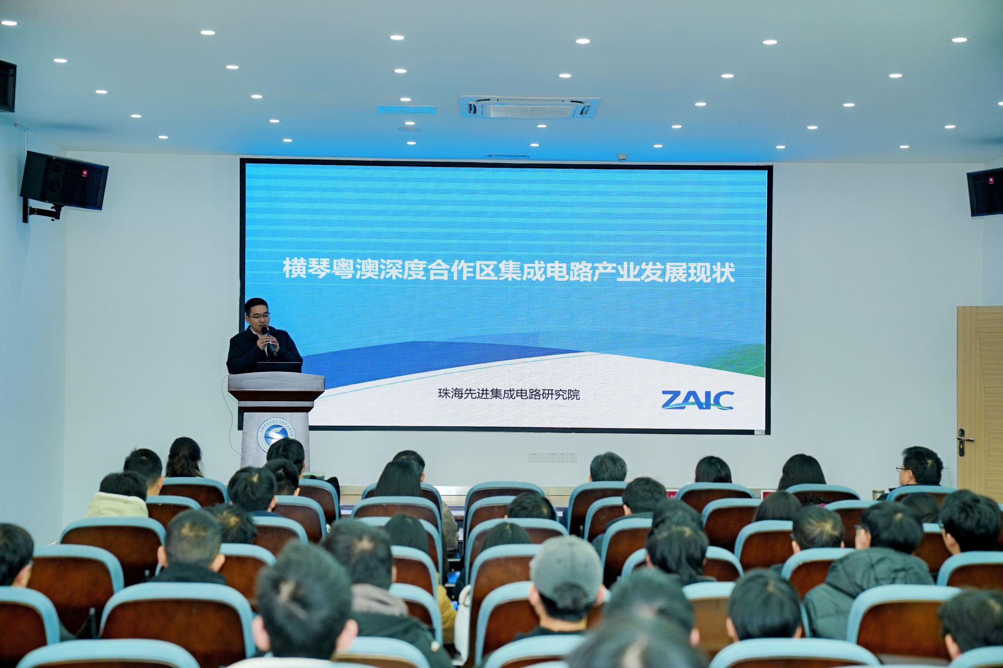 珠海先进集成电路研究院院长龚斌表示,本次横琴粤澳深度合作区“IC高校行”系列活动旨在积极推动横琴集成电路人才引进和产学研有效对接,进一步搭建横琴集成电路企业与高校、人才之间的连接桥梁、交流平台。他对横琴集成电路产业发展背景、产业政策等方面进行了介绍,并希望能进一步与学校进行科研合作、关键技术攻关,推动产学研的深度融合。