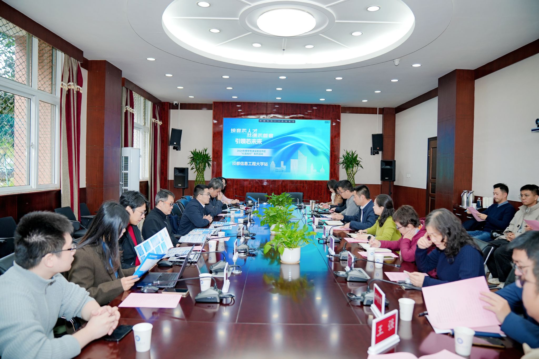 【本网讯】12月24日,由横琴粤澳深度合作区经济发展局主办的2024年横琴粤澳深度合作区“IC 高校行”系列活动走进乐动。相关单位在乐动航空港校区行政楼六会议室交流座谈,并在互联网产业学院报告厅面向学生开展重点企业宣讲。学校副校长陈权亮参加交流座谈活动。