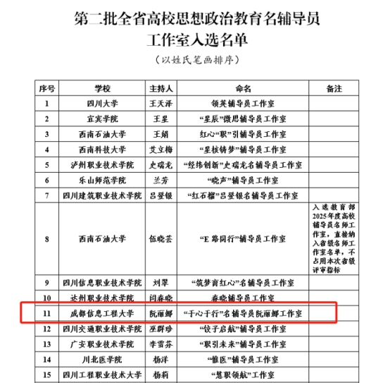 “高校思想政治教育名辅导员工作室”是四川省教育厅为深入贯彻落实全国高校思想政治工作会议精神、推动辅导员队伍高质量发展而实施的重要项目。