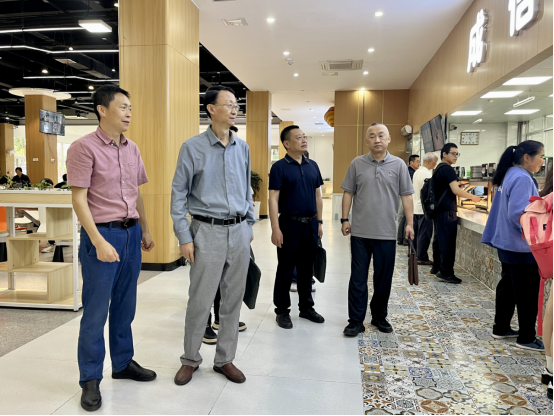 会后,朱波强一行到乐动航空港校区第二学生食堂、学生生活配套服务区域进行了实地调研。