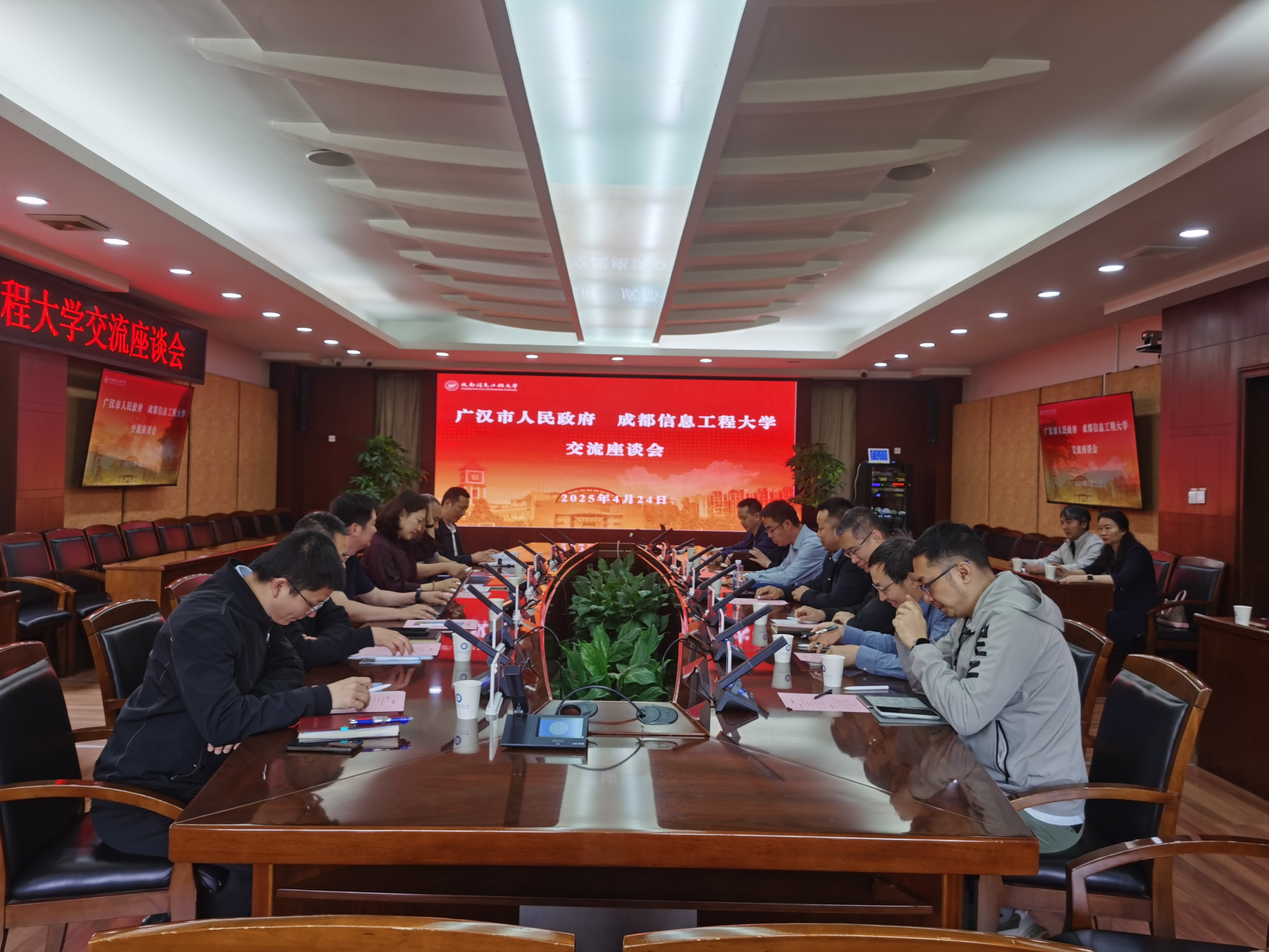 德阳市高新区经济局、德阳市高新区投促局、广汉市经信科技局、广汉市产业促进服务中心相关负责人,学校国内合作处、科技处(大学科技园管委会办公室)、电子工程学院(大气探测学院)、自动化学院、通信工程学院(微电子学院)、工程实践中心主要负责人及相关学院教师参加交流座谈。