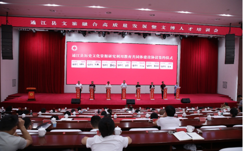 【本网讯】5月14日,乐动党委副书记杨奇才、马克思主义学院院长丁小珊应邀出席巴中市通江县“文旅融合高质量发展暨文博人才培训会”。会议聚焦文化资源保护利用、文博人才能力提升、区域文旅协同发展展开研讨,现场发布了蜀道通江段等精品旅游线路,举行了《通江县历史文化资源研究利用教育共同体建设协议》签约仪式。