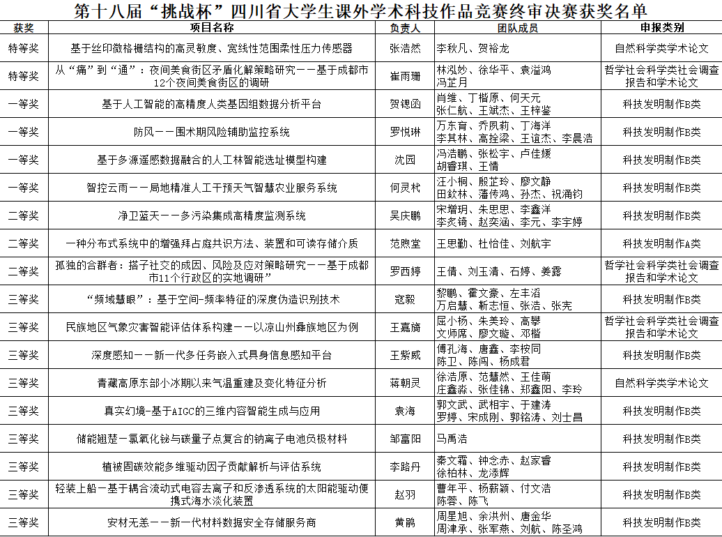 据悉,本届大赛对标全国“挑战杯”大赛,共吸引四川省121所高校、18万余名青年学生参与,共计报送2.2万件作品,近1400件作品进入省赛初评,505件作品进入省赛终审决赛。