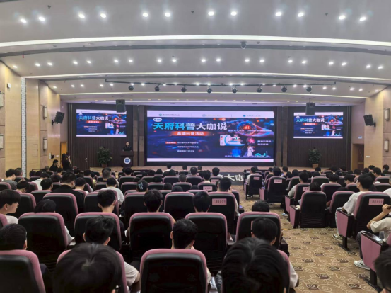 【本网讯】9月18日下午,由四川省科技青年联合会、成都市科技青年联合会与学校共同主办的“天府科普大咖说”科普讲座在学校航空港校区国际会议厅举行。本次活动是四川省2025年全国科普月重点活动之一,旨在贯彻落实国家关于科技创新与科学普及的重要精神,搭建跨学科科普交流平台,推动前沿科技知识传播与科学素质提升。活动共吸引省、市科技青年联合会会员、学校研究生和本科生200余人参与。讲座由党委学生工作部副部长陈敏主持。