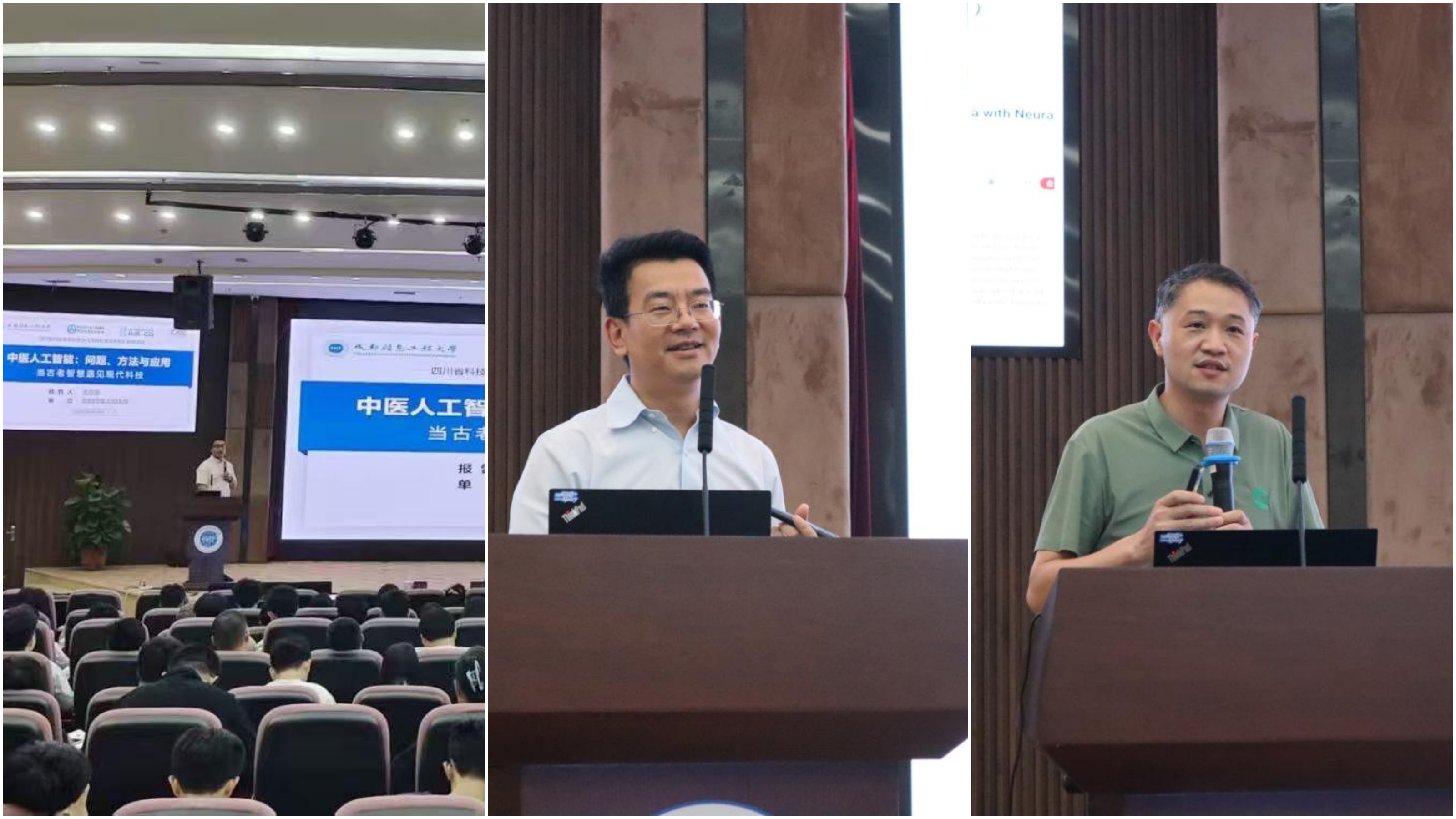 讲座聚焦科技前沿与多学科融合,特邀三位知名专家作专题报告。四川大学华西医院放射科主任吕粟教授以《精神影像的临床应用》为题,系统介绍了多模态影像技术在精神疾病脑机制研究与临床转化中的突破性进展;中国科学院成都计算机应用研究所副总工程师秦小林研究员在《漫谈人工智能:从ChatGPT到DeepSeek》报告中,深入解析大模型技术原理与发展趋势,生动展示了人工智能对科研与生活方式的深刻影响;乐动数据科学与工程系主任王亚强教授围绕《中医人工智能:问题、方法与应用》,分享了自然语言处理与机器学习在中医药现代化和智慧麻醉中的创新应用与实践路径。