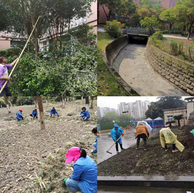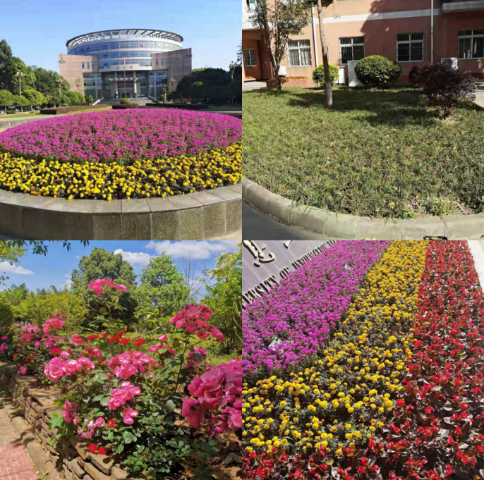 绿化养护方面,积极开展绿化改造修复工程,分期分批对校园行道树修剪、校内河道清淤及校园景点等项目进行改造提升。三月初已完成两个校区2400多棵行道树机械化修剪,人工参与河道两边修枝共计1300米。四月份已完成航空港校园7段河道的清淤、污泥处置及河道恢复等工作。另外还完成了两校区土地平整2.7万余平方米,其中已种植麦冬7200余平方米、葱兰3000余平方米、草坪300余平方米,新栽树木25棵,移栽树木43棵、时令鲜花12000盆。