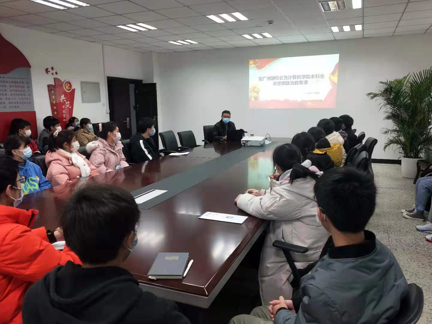【本网讯】12月8日,学校副校长范广洲在双中心A311给计算机学院本科生进行了思想政治课教育。