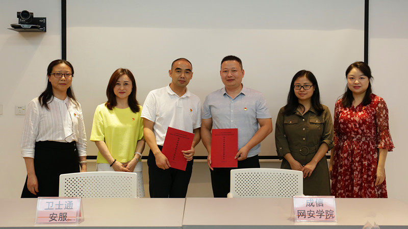 参观结束后,全体同学在卫士通会议室参加了乐动在线登录网络空间安全学院研究生党支部与卫士通安服事业部党支部结对共建签约仪式和交流座谈。签约仪式前,卫士通总经理助理陈澜女士代表公司致欢迎辞并介绍卫士通企业的概况,她表示,企业发展的一个重要途径就是校企联合,期望在党建、技术、育人、招聘等方面与成信大网络空间安全学院进行深入合作,实现校企双赢。随后,林细俤和李雅静也分别做了发言。林细俤与卫士通安服事业部党支部书记叶定松分别代表校企双方签订了党支部结对共建协议书并合影留念。