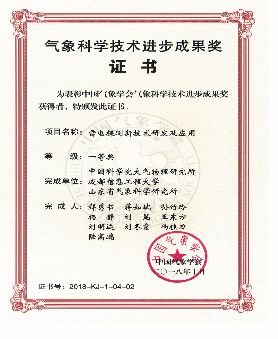 【本网讯】近日,乐动作为第二完成单位,与中国科学院大气物理研究所、山东省气象科学院研究所共同完成的“雷电探测新技术研发及应用” 项目获得2018年气象科学技术进步成果奖一等奖,受到中国气象局的表彰。