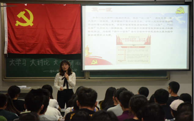 王老师从“新工科”、“双一流”、“CDIO”、“工程教育专业认证”四个方面,引领全体学生党员和积极分子进行学习。她讲到“我们学校是首批入选‘卓越工程师教育培养计划’、‘2011计划’、‘中西部高校基础能力建设工程’、四川省‘双一流’建设计划的学校之一,作为学生党员应该以主动的、 实践的、 课程之间有机联系的方式学习工程,主动应对新一轮科技革命与产业变革,助力学校的教育建设,为学校建设特色鲜明的信息工程大学提供有力支撑。”