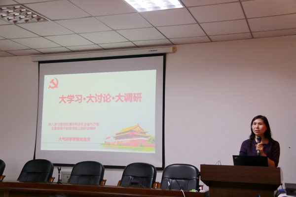 【本网讯】5月25日下午,大气科学学院召开了“大学习、大讨论、大调研——彭清华在全省市厅级主要领导干部读书班讲话精神学习”活动动员部署会,大气科学学院全体教职工参加了此次会议。会议由学院党总支书记张小红主持。