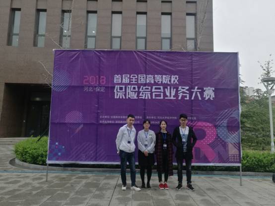 4月21-22日,全国高校金融创新竞赛之首届全国高校保险综合业务大赛在河北大学举行,包括河北大学、广东财经大学、福建师范大学等全国48所高校的200余名学生参加了此次比赛。经过校内选拔赛,乐动由滕磊老师带领金融工程和财务管理专业的四名同学组成的代表队参加了此次比赛。最终,四位同学进入了互联网+保险创新设计竞赛环节,获得优秀奖,王源源、孙瑞和李欣怡三位同学获得了个人三等奖。