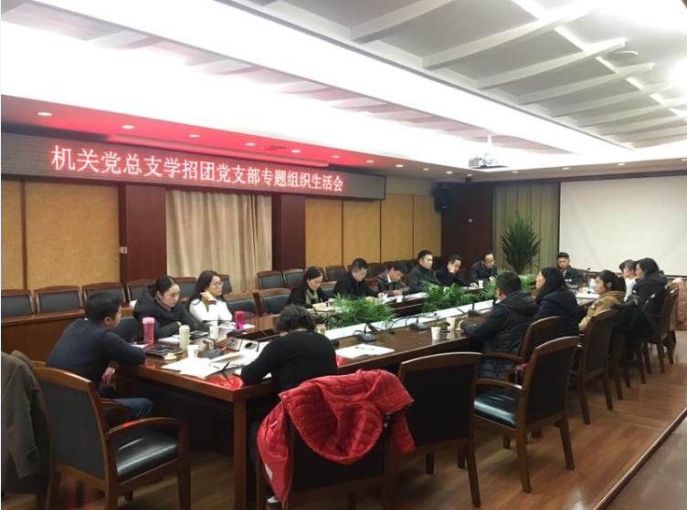 【本网讯】按照全面深入学习宣传贯彻党的十九大精神和“两学一做”学习教育要求,1月5日下午,机关党总支学招团党支部在航空港行政楼第七会议室召开专题组织生活会。会议由学招团党支部书记陈智勇主持。