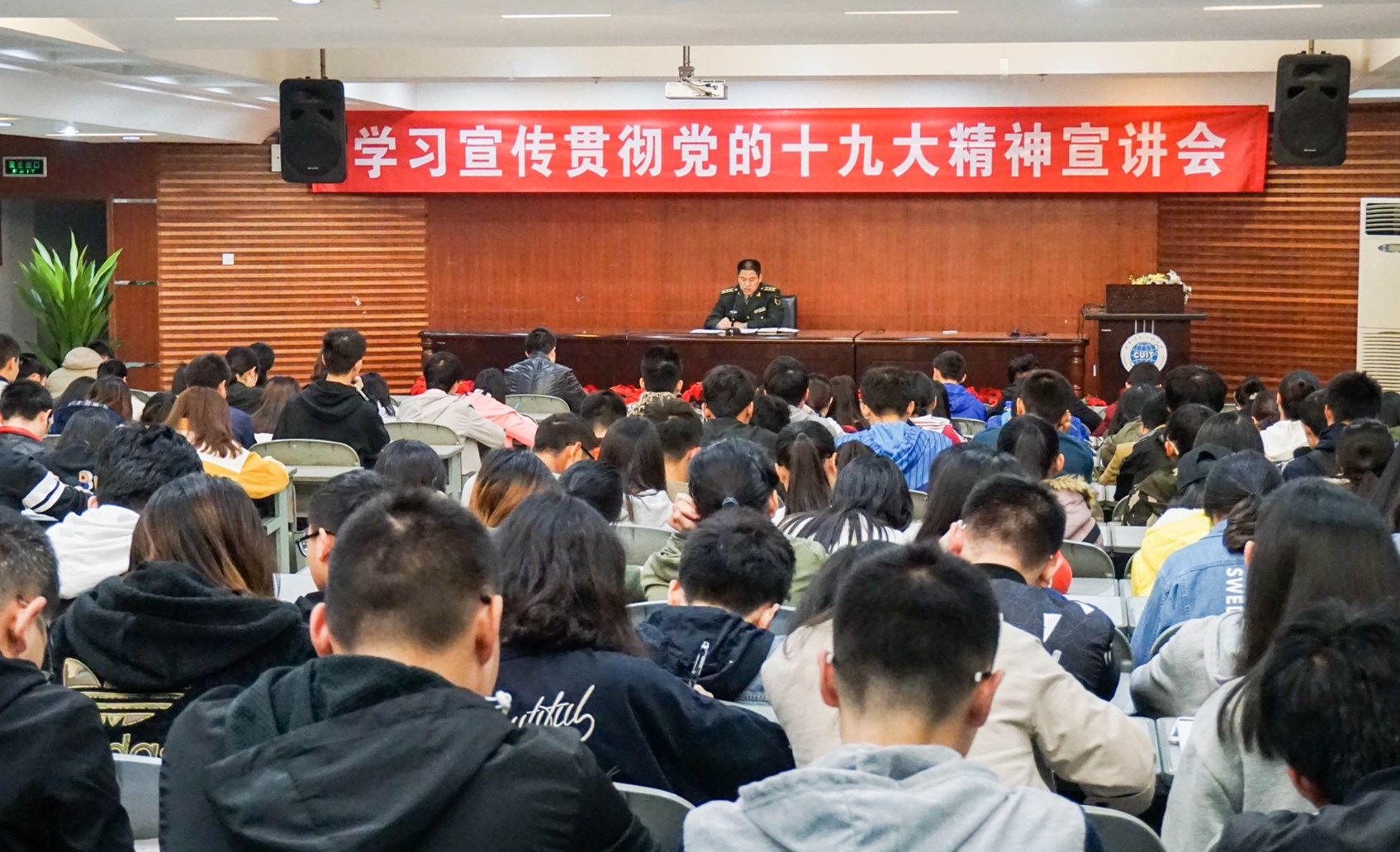 【本网讯】为深入学习宣传贯彻党的十九大精神,在乐动学生中迅速兴起学习宣传贯彻十九大精神的热潮,11月15日,学生工作处在乐动航空港校区学术报告厅开展了学习宣传贯彻十九大精神宣讲会,学生工作处特邀双流区武装部王政委做主讲人。航空港校区各学院辅导员代表及学生代表300多名参加宣讲会。宣讲会由学生工作处副处长陈智勇主持。