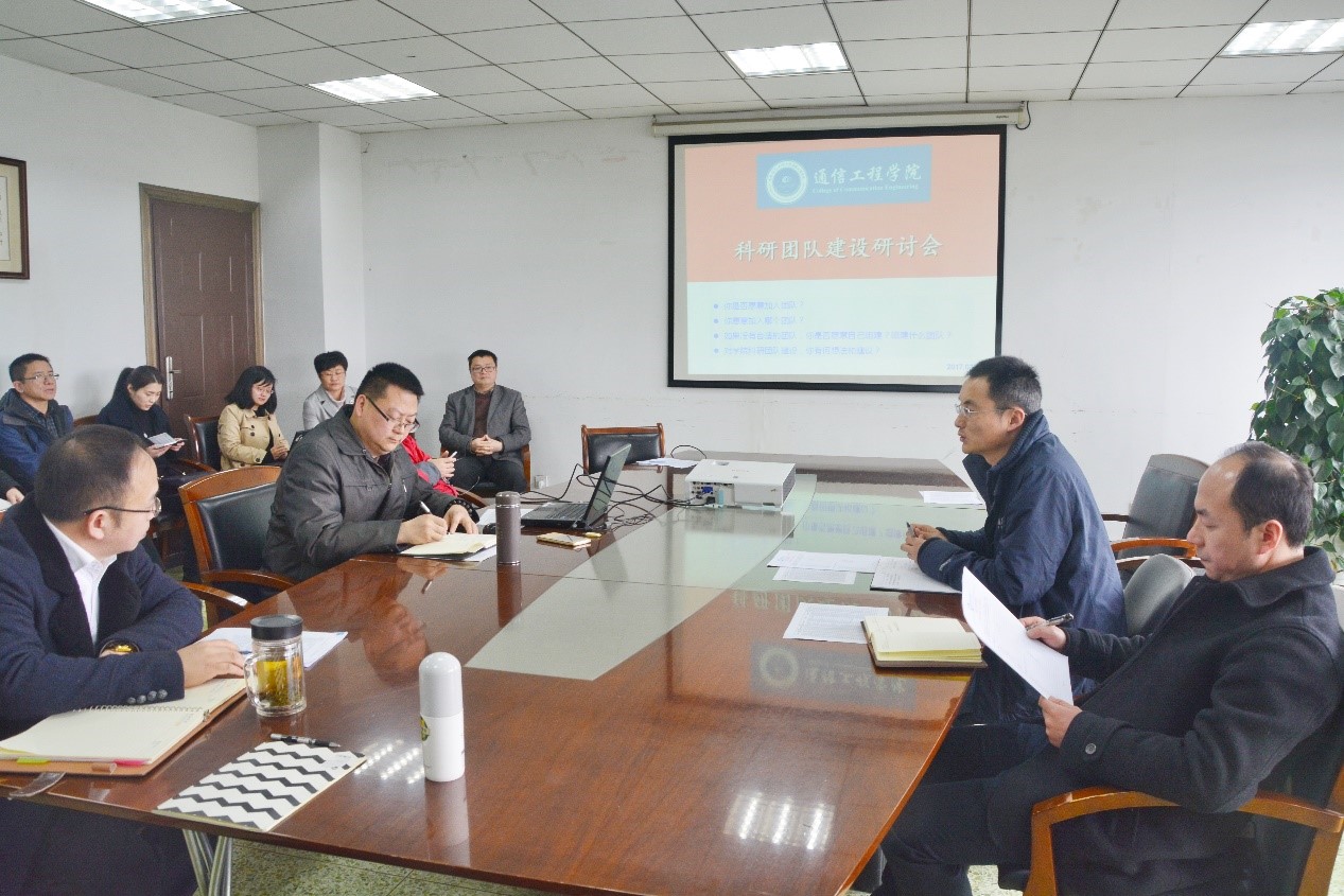 【本网讯】3月17日下午,通信工程学院在信息楼413会议室召开了科研团队建设研讨会。会议由李英祥院长主持,杜江副院长、全院教授、副教授、博士参加了此次研讨会,学校科技处处长朱明和张老师到会进行指导。