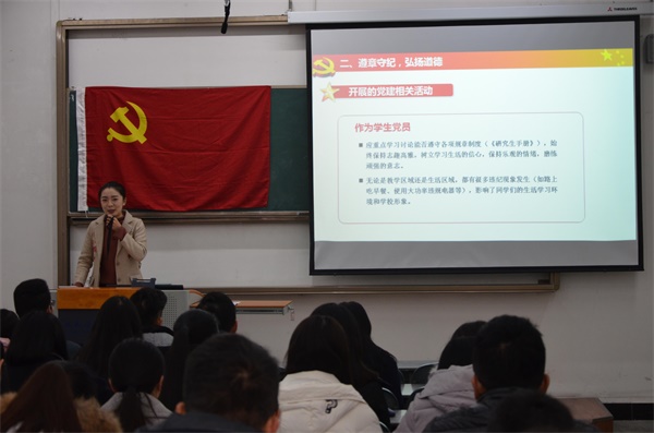 胡培对与会党员提出四点要求:一是要牢固树立“四个意识”,做到“三个坚决”;二是要加强和规范党内政治生活;三是要以学习为重,守住“六大”纪律;四是要严于律己,率先垂范,从自身做起,努力营造良好的校园环境。