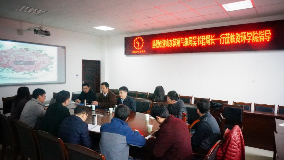 【本网讯】12月9日上午,山东滨州气象局吴书君局长一行四人莅临乐动在线登录资源环境学院指导工作。乐动在线登录资环学院副院长徐成华,乐动在线登录科技处副处长汤志亚、刘琥,遥感科学与技术教研室主任刘志红、地理信息科学教研室主任王增武、测绘科学与技术教研室主任王永前及其他相关教师参加了本次座谈会。