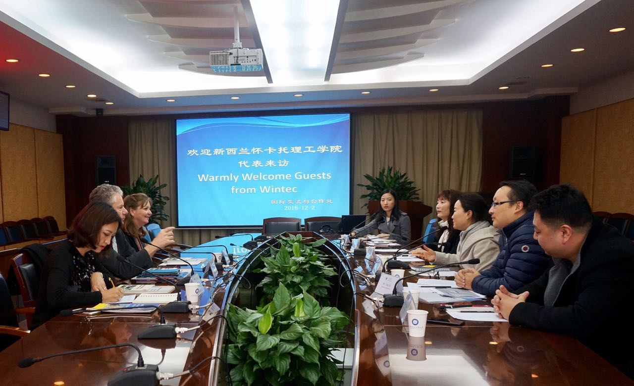 12月2日上午,新西兰怀卡托理工学院国际处中新合作项目主任Tony O’Brien、SODA创意企业孵化器总监Claire McGowan、国际处国际合作专员刘莎白一行来校访问并在行政楼第七会议室参加会议,洽谈大学生创新创业合作项目事宜。会议由国际交流与合作处处长段黔冰主持,教务处处长陈敏、大学科技园管委会办公室副主任宋波、国际交流与合作处科长盖秋艳、大学科技园管委会办公室综合科副科长管廷岩参加会议。