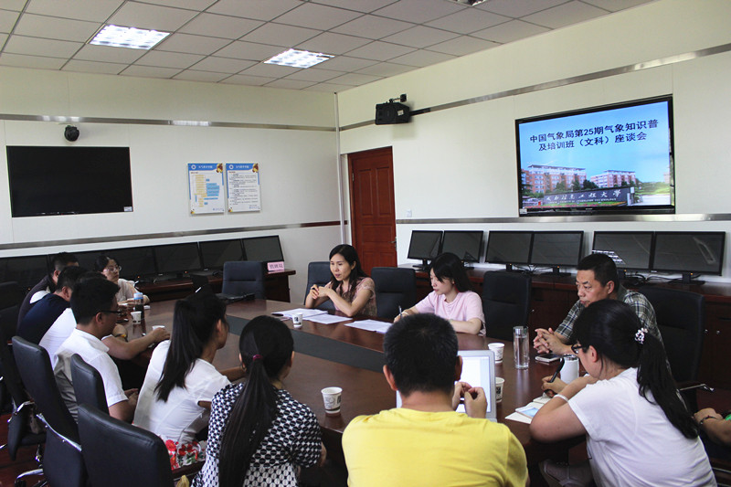 【本网讯】 6月15日下午,大气科学学院在气象楼115会议室举行了中国气象局第25期气象知识普及培训班(文科)座谈会。党总支书记张小红、培训班班主任吴云及学员代表参加了座谈会。