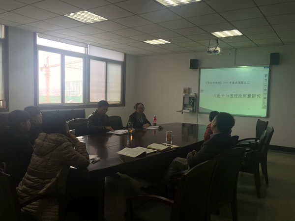 孙莎岚介绍了政治学院2016年度院级课题的选题方向以及基本要求,同时也针对老师们的一些选题进行了分析与说明。龚秀勇对老师们的申报书进行了点评,他结合老师们的选题,针对大家的科研方向与专业背景逐一进行了分析与指导。