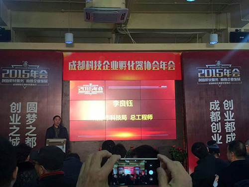 【本网讯】 1月27日,2015年成都科技企业孵化器协会年会在成都召开,成都市科学技术局总工程师李良钰,四川省科技厅高新处处长裴伟征,四川省科技厅高新处副处长谢光红,成都市科学技术局创新创业服务处处长丁琴,成都市科技局科技合作与成果管理处处长周洪等领导及国家、省、市创新创业载体运营机构负责人和代表150余人出席了会议。乐动成创空间应邀参加。