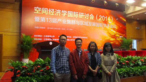 [本网讯]空间经济学国际研讨会(2014)暨第13届产业集群与区域发展国际学术会议,于10月24日至26日在江苏省徐州市江苏师范大学举行。此次大会由中国区域科学协会空间经济学专业委员会和江苏师范大学联合举办。商学院方杰教授带领区域经济学及产业经济学专业方向研究生参加了此次会议。