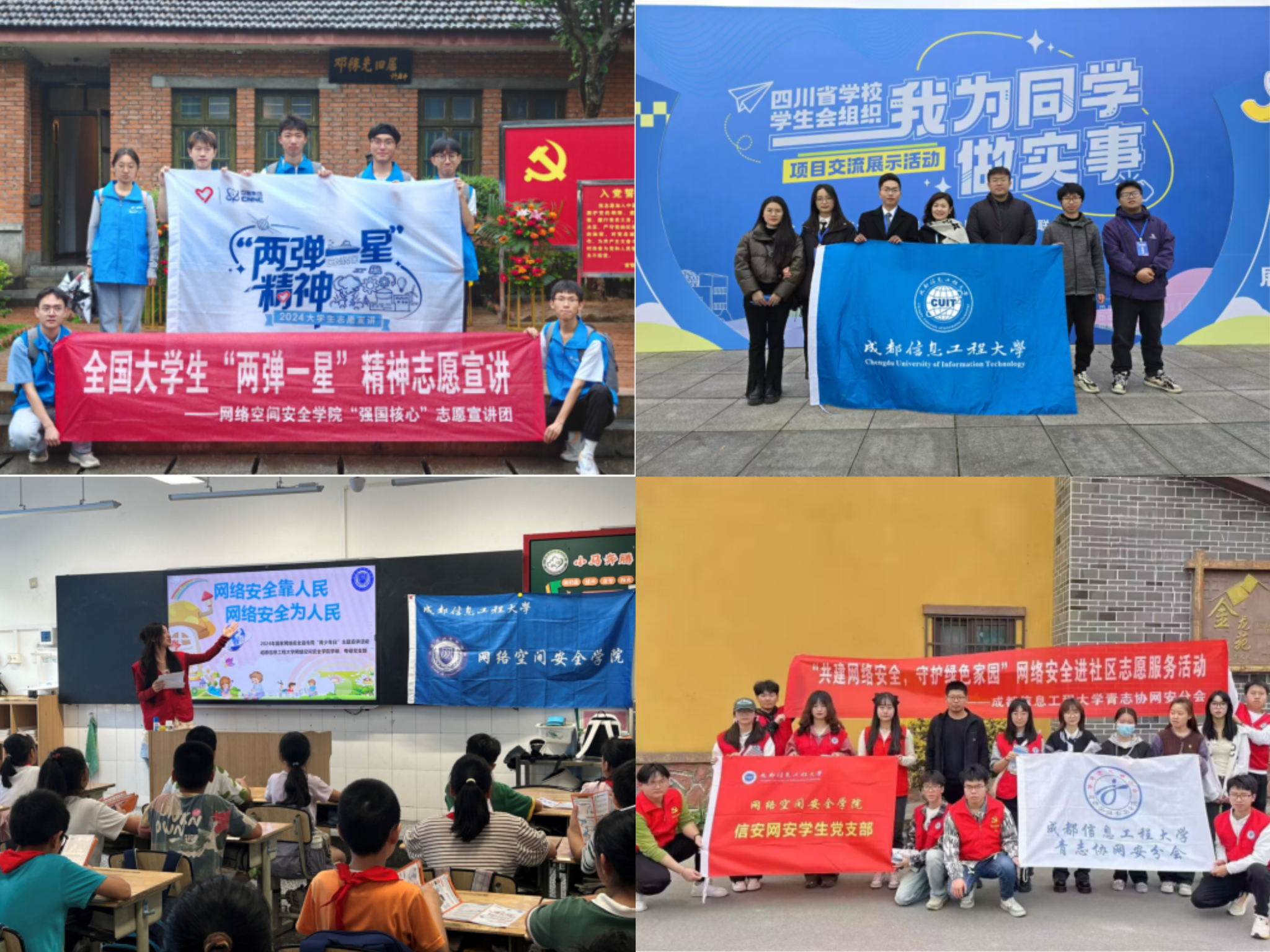 组建“国家安全,你我共筑”团队,以网络安全为特色,荣获全国大学生“两弹一星”精神志愿服务项目、四川省“我为同学做实事”百佳项目,并获批省级“三下乡”社会实践重点团队。相关活动多次被校内外媒体报道,成为推动校园安全文化建设的典范。