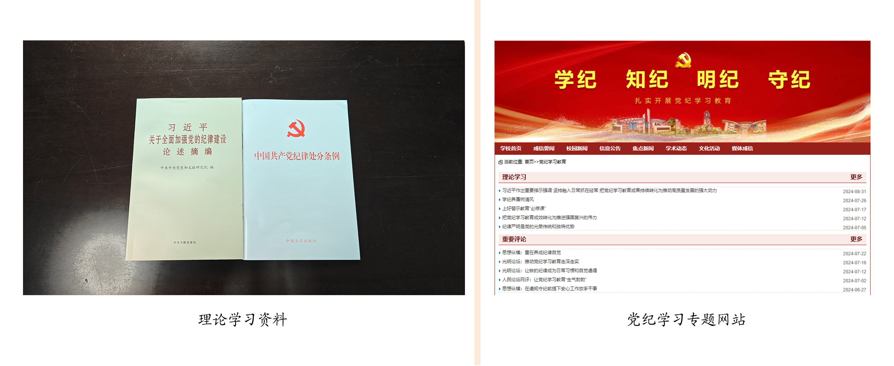2.深入学纪,紧扣党的“六项纪律”深学细悟。一是以上率下专题学。党委理论学习中心组开展党纪学习教育专题学习5次。二是逐章逐条全面学。原原本本学习《习近平关于全面加强党的纪律建设论述摘编》《中国共产党纪律处分条例》各章节内容。三是紧扣实际系统学。把党纪学习教育同贯彻落实党中央重大决策部署和省委发展战略、完成学校重点工作任务结合起来。四是警示教育深刻学。通过观看违法违纪干部警示教育片、参观法纪教育基地等,深刻把握党的“六项纪律”的主旨要义和实践要求。五是专家阐释深入学。邀请校内外专家作党纪学习教育辅导报告3次。