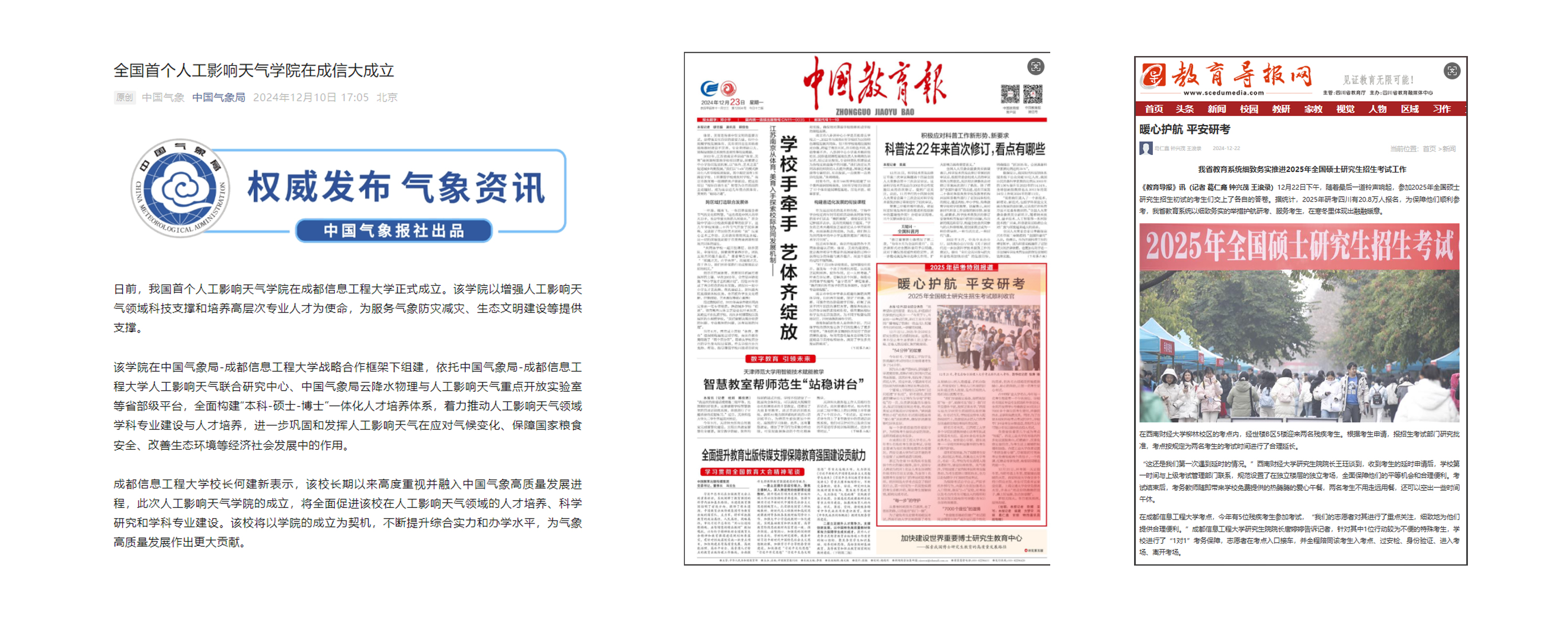 2.激活力,有效提高传播效能。积极对接主流媒体,持续做大媒体“朋友圈”,让传播实效强起来。人民网、新华网、中国青年报等主流媒体,全年刊发外宣稿件、视频报道110多篇(条),央视《晚间新闻》报道了第十六届“气象防灾减灾宣传志愿者中国行”启动仪式。分别在中国气象报、中国教育报和四川日报刊登博士点外宣报道3篇。在《中国教育报》《教育导报》、微言教育等媒体针对学校2025年研招考护航特殊考生“无忧研考”进行了特别报道。在《中国气象报》上报道了乐动为全国首家成立“人工影响天气学院”的学校。