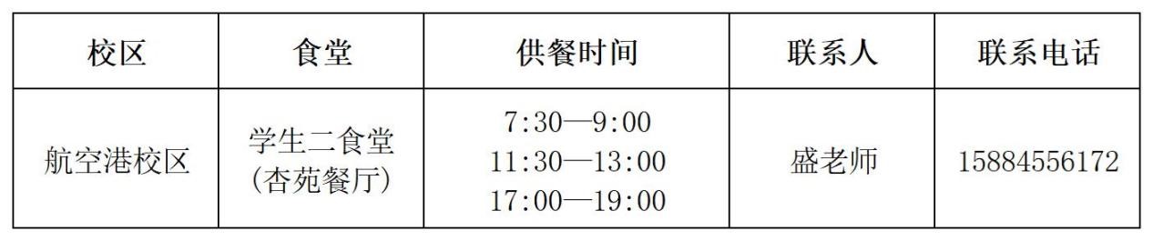 (一)航空港校区学生第一食堂1月14日—2月21日暂停供餐,2月22日(星期六)起正常供应;