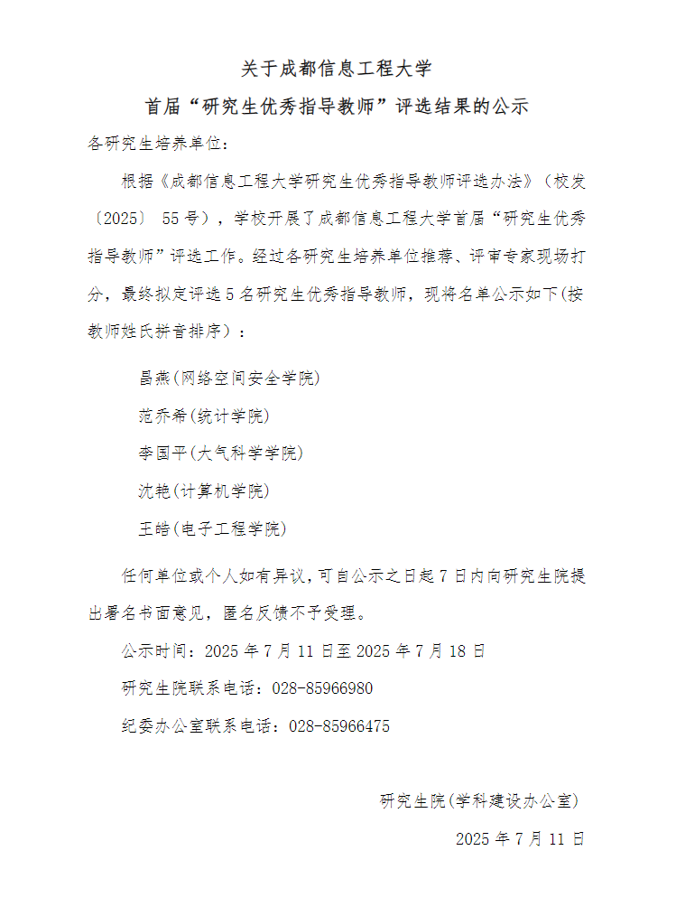 来源:研究生院(学科建设办公室) 作者:李阳旭日期:2025-07-11 审核:唐婷婷、何源 点击: