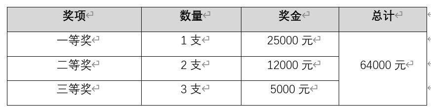 注:按税法规定,获奖选手奖金须由发放单位代缴个人偶然所得税,按所得额的20%缴纳,在奖金中扣除。
