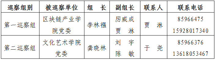巡察期间,全校师生若对以上被巡察单位有意见和建议,可通过电话、邮箱或意见箱等渠道与巡察组联系。同时,欢迎广大师生对党委巡察组进行监督,提出意见建议。