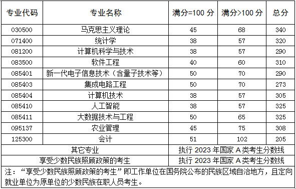 2、满分300分的专业,总分比国家A类考生分数线降20分,单科不做要求。