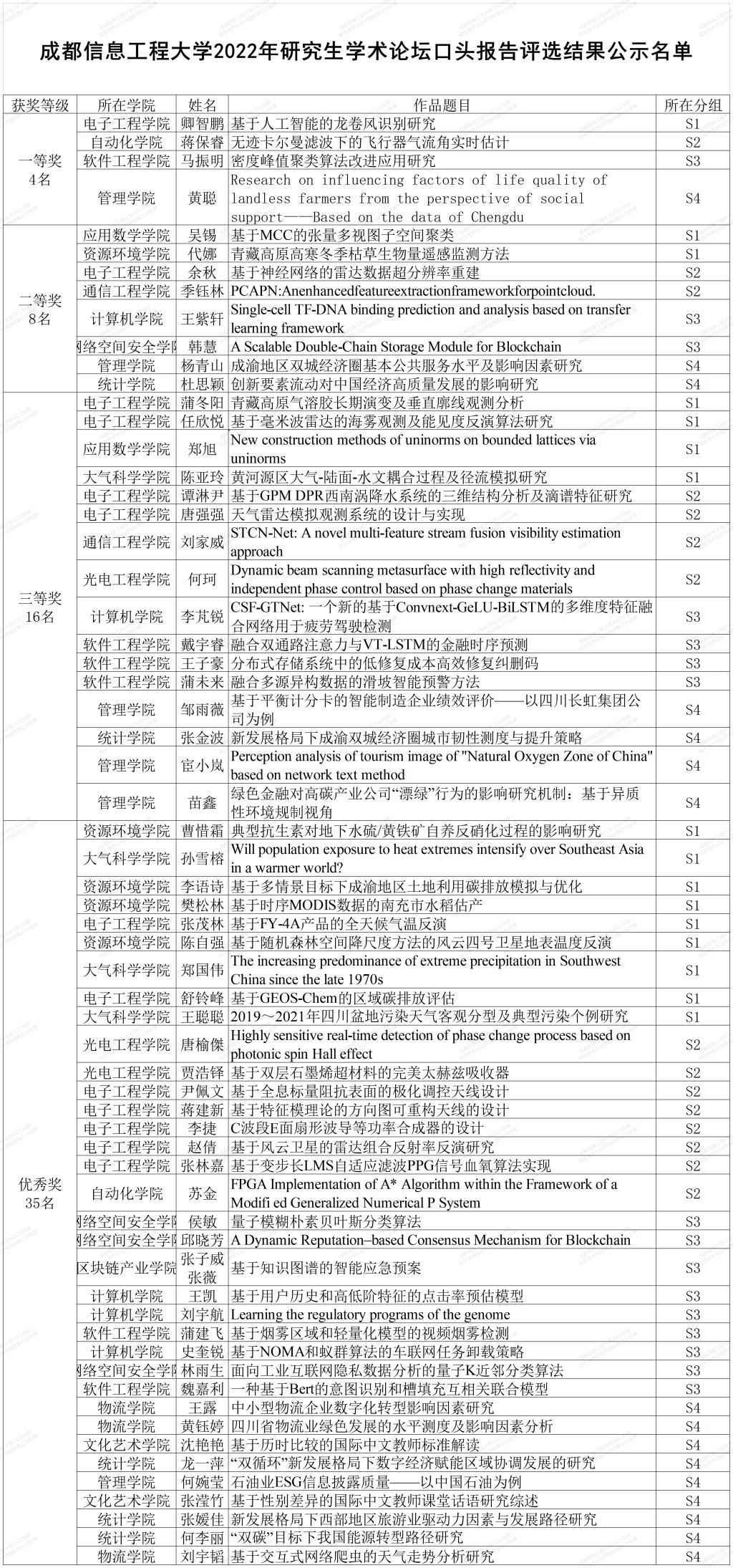 【本网讯】2022年11月10日“乐动在线登录2022年第五届研究生学术论坛”成功举办。本次论坛经组委会和各学院积极组织前期共收到研究生参赛作品230份,其中包含口头交流报告64个,墙报166件。根据《关于举办乐动在线登录2022年研究生学术论坛的通知》安排,本次论坛组织分会场评委对现场63个口头交流报告和165件墙报进行评选,现将评选结果予以公示: