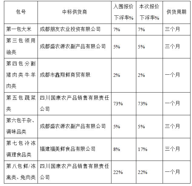 根据框架协议,现将乐动在线登录2022年度食堂大宗物资采购项目(项目标号:QXZB-2022-0433X)第二阶段第一竞价周期报价竞价,确定以下单位成为成交供货商。结果公示如下:
