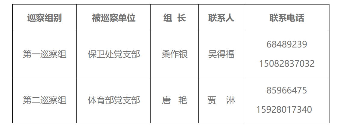 巡察期间,全校师生若对以上被巡察单位有意见和建议,可通过电话、邮箱或意见箱等渠道与巡察组联系。同时,欢迎广大师生对党委巡察组进行监督,提出意见建议。