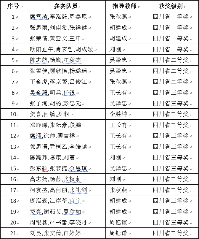 日前,从全国大学生数学建模竞赛四川赛区组委会获悉,四川赛区成绩揭晓,乐动有21支参赛队获奖,其中4支参赛队获四川省一等奖,3支参赛队获四川省二等奖,14支参赛队获四川省三等奖,成绩优异。详细名单如下。