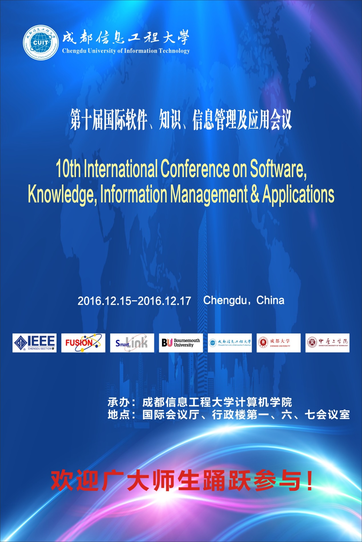 第十届“国际软件、知识、信息管理及应用会议”将于2016年12月15日至17日在乐动举行