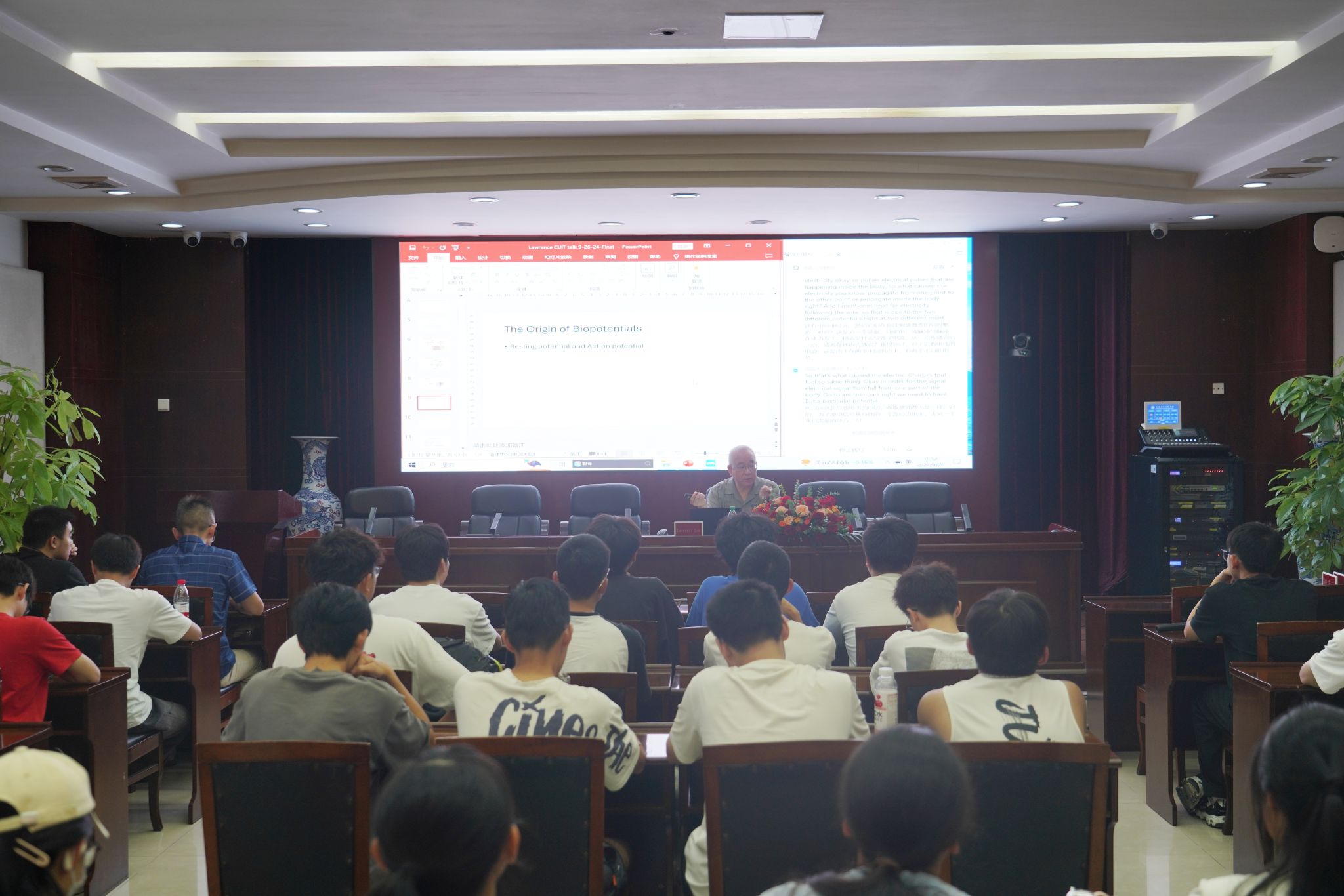 【本网讯】9月26日下午,由国际交流合作处主办的2024年“全球视野·共筑未来”国际教育周系列讲座活动在航空港校区行政楼第一会议室举办。来自四川大学匹兹堡学院的LAWRENCE LAM 教授应邀来到活动现场,为航空港校区100余名师生带来了题为“Bioelectronics and apply what you learn in real life”的学术报告。