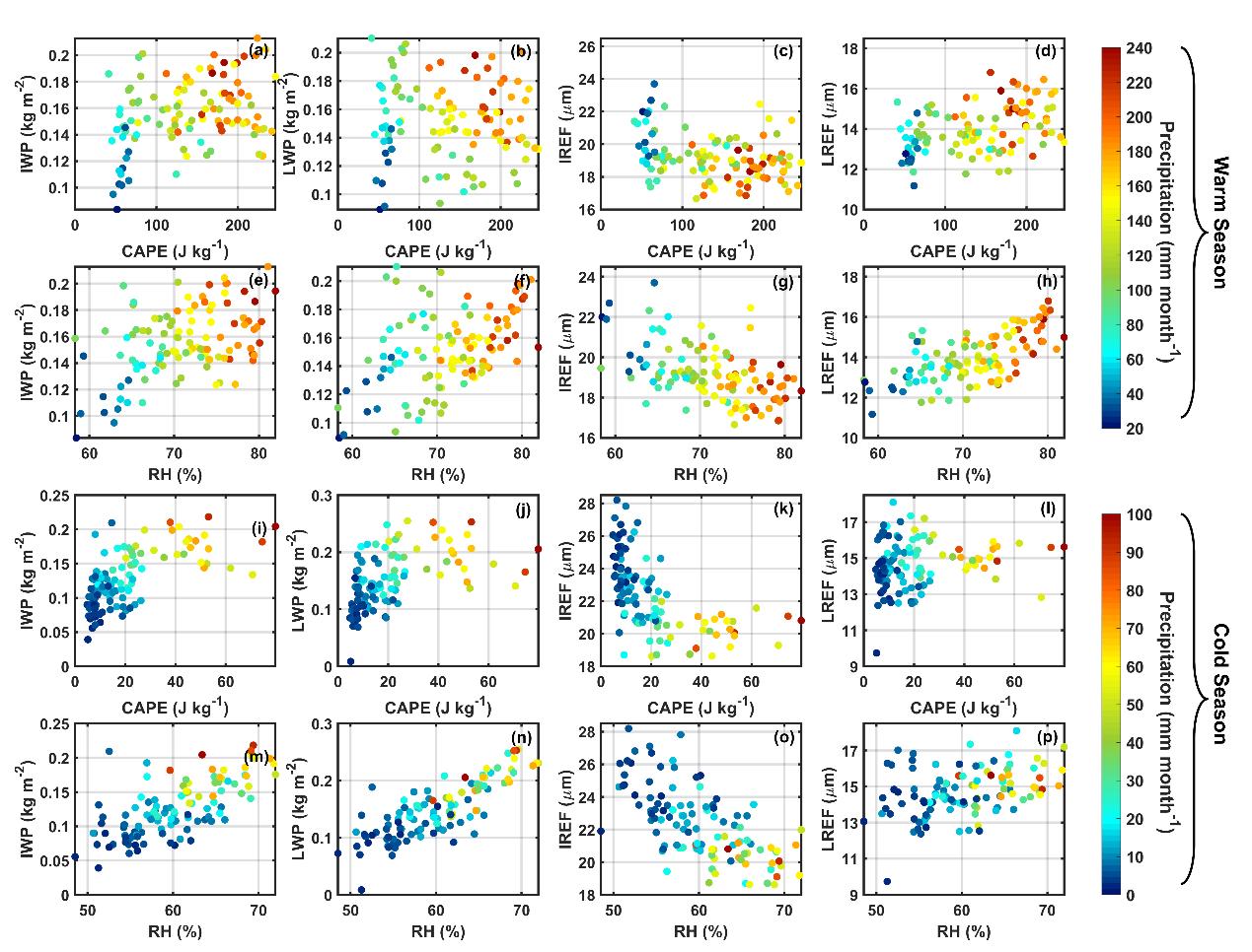 论文研究了中国西南地区云与降水关系,发现青藏高原西部降水与冰相云属性的关系较好,而在青藏高原东部中降水与各云属性均有较好的相关性;四川盆地降水对冰水路径的敏感性和响应性均要高于液水路径。青藏高原东部降水与各云属性均有较好的相关性CAPE激发降水的效率在高原东部最高,体现了该地区对流降水的重要性。