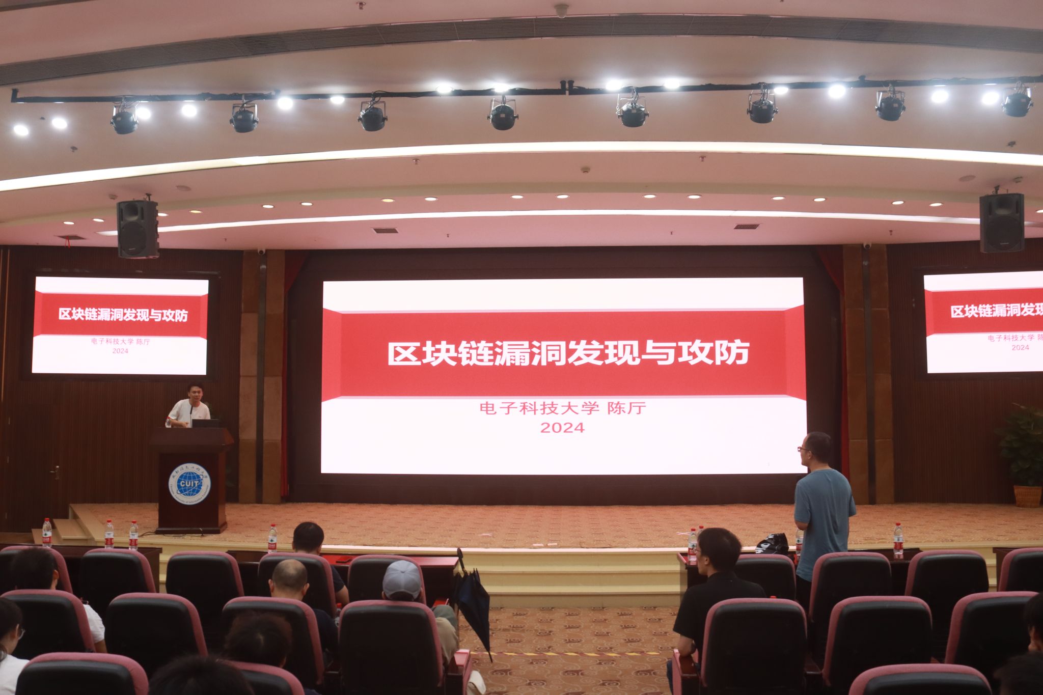 【本网讯】6月3日晚,电子科技大学计算机学院教授、博士生导师陈厅应邀在乐动航空港校区国际会议厅作了题为《区块链漏洞发现与攻防》的精彩学术报告,区块链产业学院部分教师、全体研究生及2022级、2023级本科生共200多人聆听此次报告。报告由学院党委书记林细俤主持。