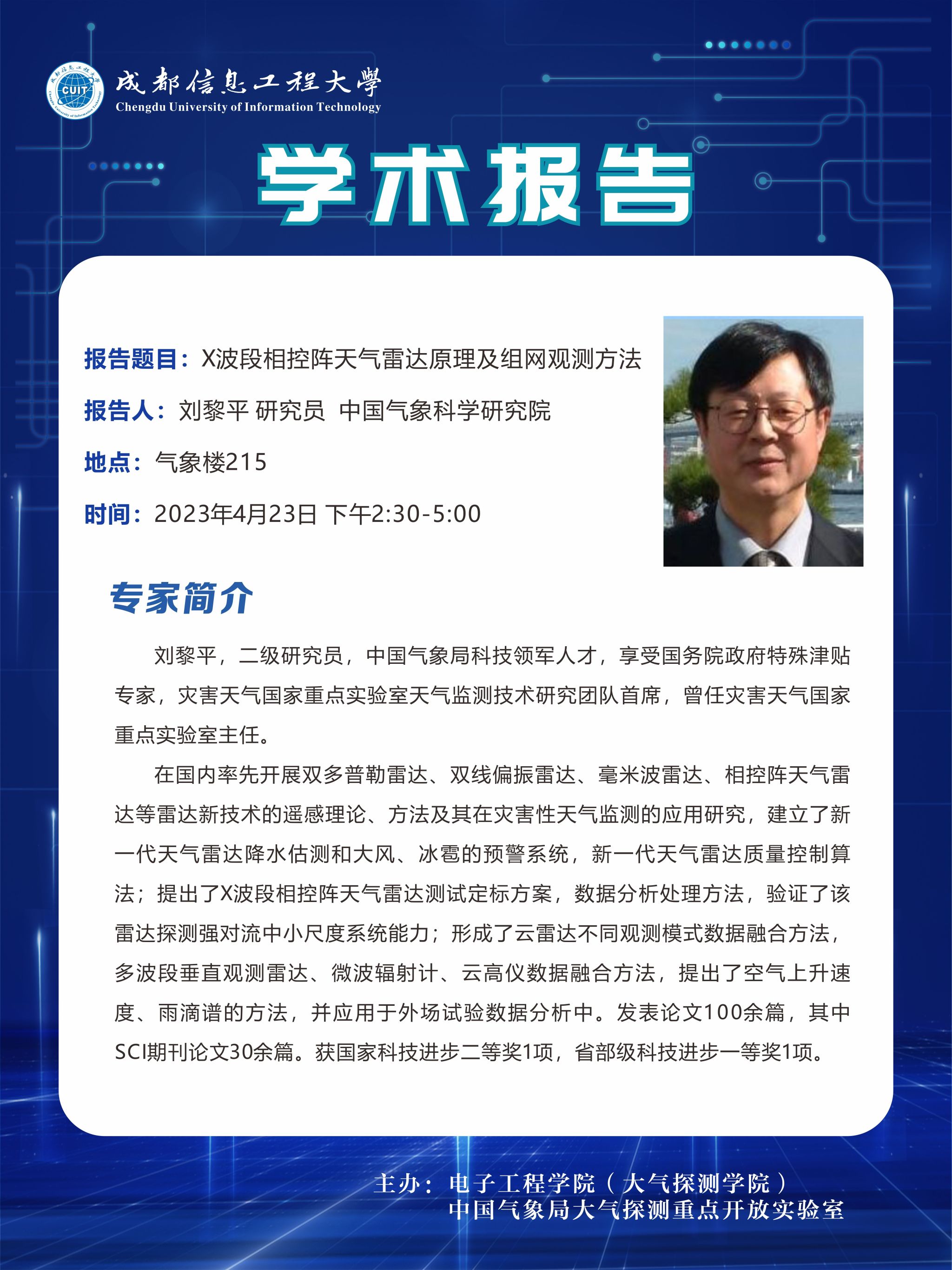 来源:电子工程学院(大气探测学院) 作者:周意超日期:2023-04-21 审核:新闻中心 点击:
