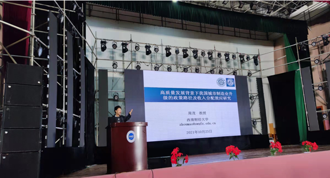 【本网讯】七秩风华,征程如歌。在欢庆乐动70华诞之际,10月23日下午,乐动国际经济与贸易专业2007级校友、西南财经大学周茂教授应邀到龙泉校区大礼堂作了题为“高质量发展背景下我国城市制造业升级的政策路径及收入分配效应研究”的学术报告。统计学院部分返校校友,全体教师、研究生及部分本科生聆听了报告。报告由统计学院副院长滕磊主持。