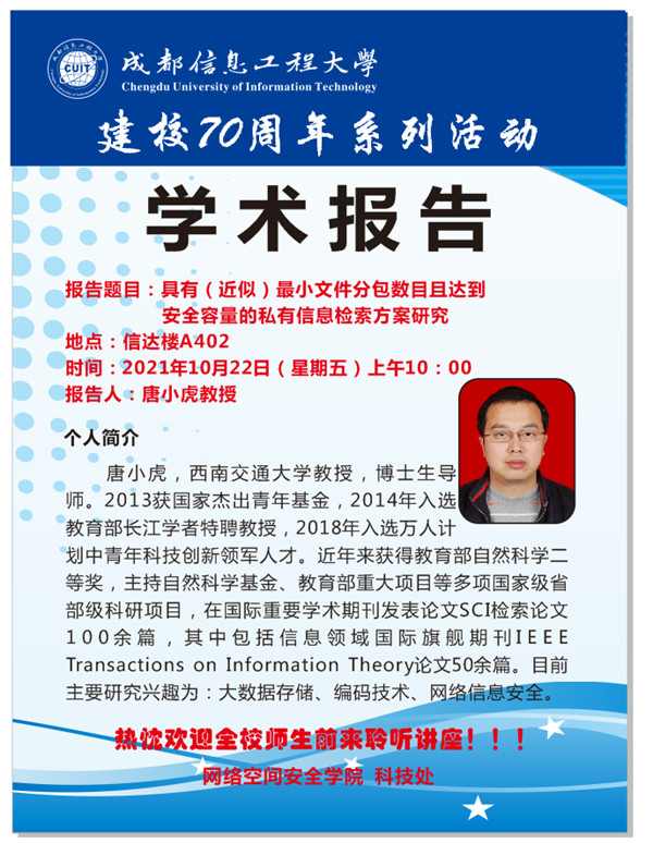 来源:网络空间安全学院 作者:吴婷婷日期:2021-10-20 审核:新闻中心 点击: