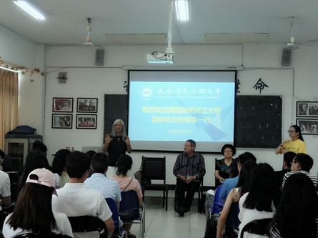 【本网讯】6月8日,美国加州州立大学洛杉矶分校健康与人文服务学院院长Ron Vogel教授、社会工作系系主任Evaon Wong-kim教授、社会工作系Sivon Rhee教授一行来乐动龙泉校区进行了学术交流。Evaon Wong-kim教授做:“美国健康社会工作的角色功能及课程体系设置”的学术讲座,文化艺术学院社会工作师生60余人聆听了讲座。讲座由社会工作与社区发展研究所所长陈会全主持。