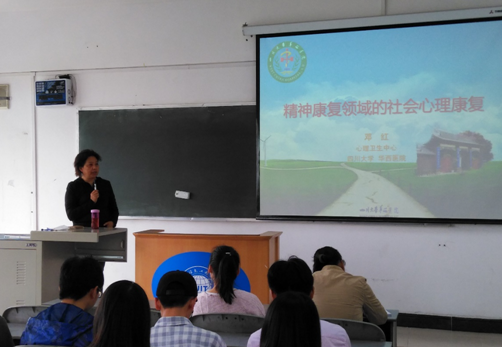 【本网讯】近日,应乐动文化艺术学院的邀请,四川大学华西心理卫生中心精神康复专家邓红教授在乐动龙泉校区1303教室,举办了题为《精神健康领域中的社会心理康复》的学术讲座。学院社会工作与社区发展研究所全体老师,社会工作专业本科生、研究生100余名学生聆听了讲座。讲座由文化艺术学院副院长徐砺主持。