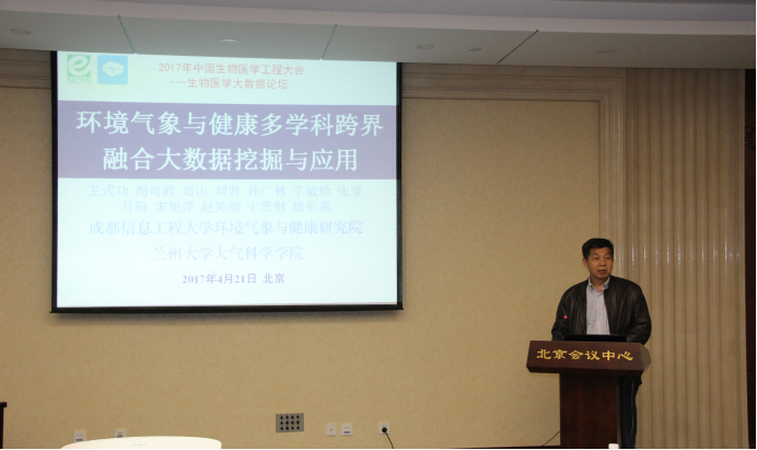 此次大会设立的分论坛“生物医学大数据”由刘德培院士主持,郑忠伟致欢迎词。乐动大气科学学院王式功教授应邀作了题为《环境气象与健康多学科跨界融合大数据挖掘与应用》的特邀报告。王教授从全民健康面临的重大问题,跨界数据融合的必要性,数据分析与建模的方法等方面做出了介绍;并对团队的研究成果及成果的应用与服务进行了重点说明。他重介绍了团队应用环境气象与健康的跨界融合大数据所建立的“迈福网”和“交通安全与健康出行网两个服务性的网站”以及这两个网站关于天气条件对人群健康和出行影响的预测预报及服务情况。与会代表对此反响热烈,获得一致好评。将跨界大数据融合促进新兴交叉学科发展的现状与前景展示给专家和媒体,不仅对该学科自身的长远发展具有重要意义,更为大数据促进健康中国2030战略目标的实现起到了良好的推动作用。